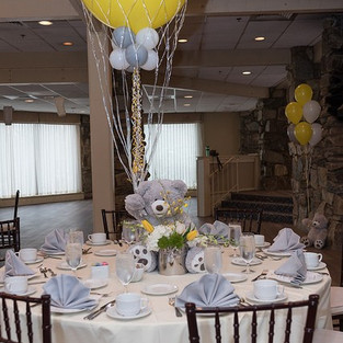 The photographs in the gallery below were taken at another important event for the legacy clients: their baby shower. The theme for the bridal shower was personalized with colors and decor reflecting the bride-to-be’s love for Tiffany & Co. and Tea. The baby shower reflected her love for Teddy bears. Guests were greeted at the door by a Teddy bear and each table’s centerpiece was a Teddy bear with flowers and balloons, and the cake was also a Teddy bear.
